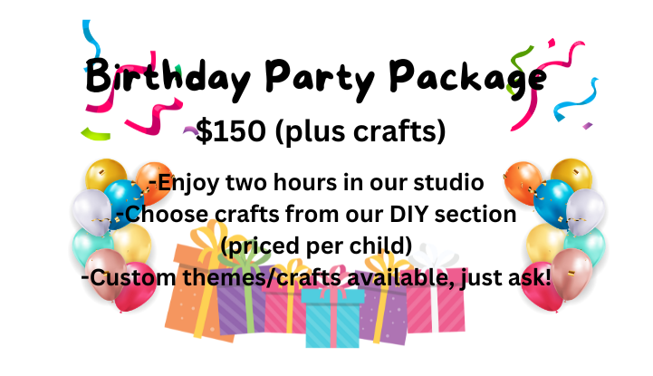 In addition to our in store selection, we now have a studio space great for birthday parties, workshops, crafting classes, and more!