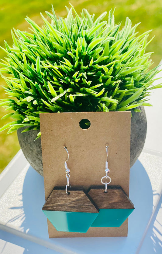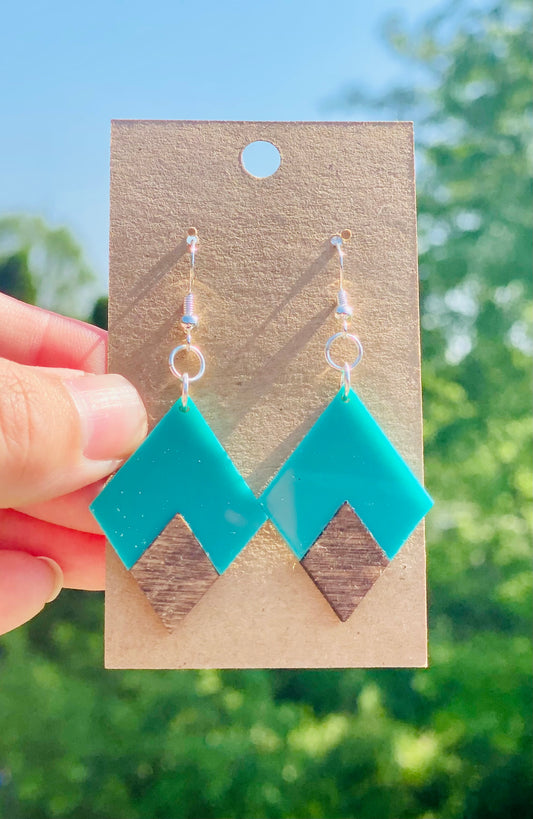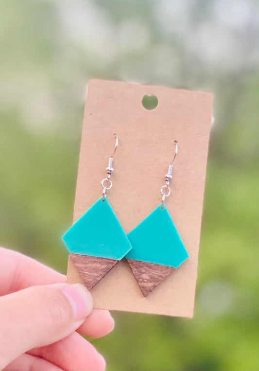 Teal acrylic/dark walnut triangles