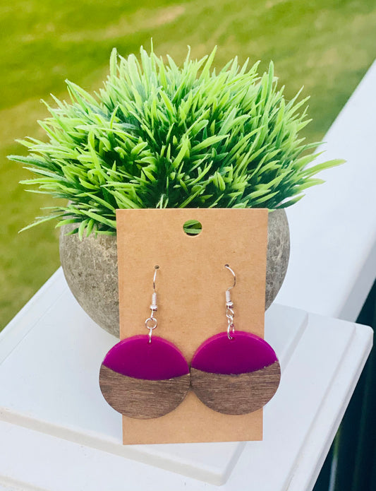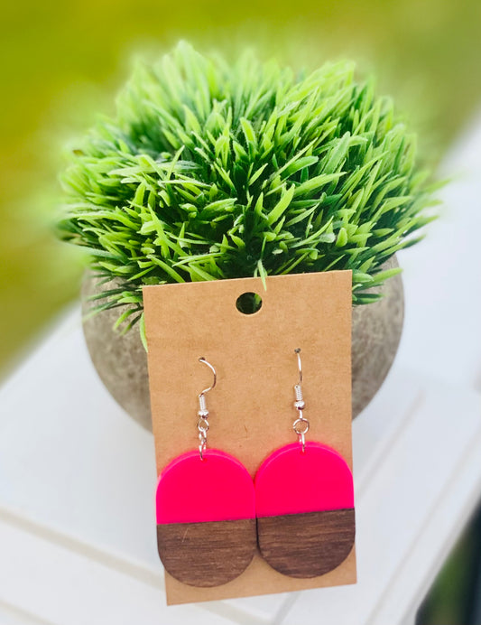 Hot pink acrylic/dark walnut ovals
