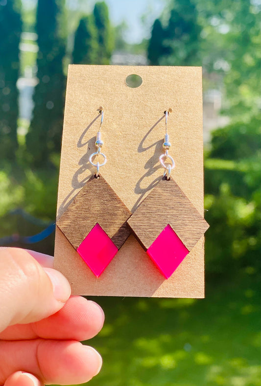 Dark walnut/pink acrylic triangles