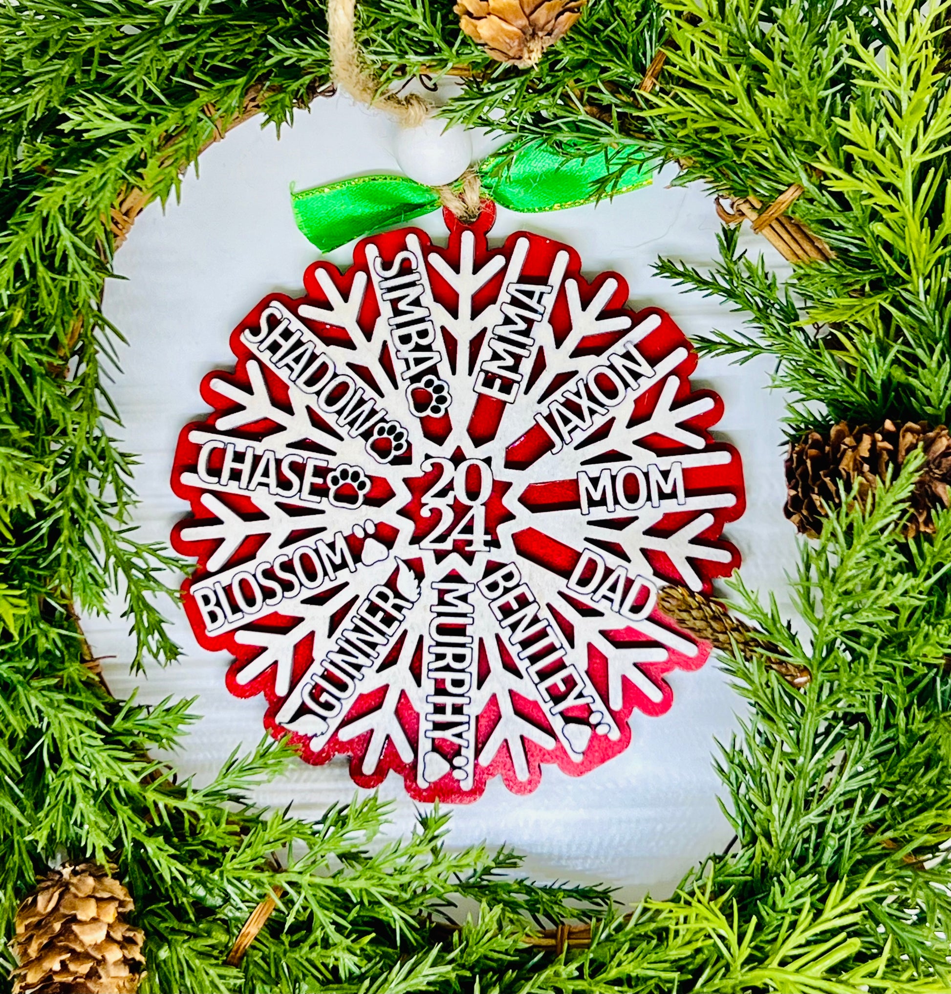 Each ornament is topped with a bow and bead. Each one comes packaged and ready for gifting. We can accommodate up to 12 names! We can add your fur babies as well! When entering names simple add (dog) or (cat) after their names.